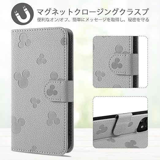 【Qribo】Xiaomi Poco X7 Pro ケース 手帳型 無地のかわいいクラシックなミッキーのアバター Redmi Turbo 4 ケース 軽量 薄型 マグネット式 ポコX7 Pro ケース手帳型 カード収納 スタンド機能 レッドミTurbo4 カバー 衝撃吸収 活気のある雰囲気 Poco X7 Pro 5G スマホケース 放熱性 折りたたみ 6.67インチ【グレー】 a