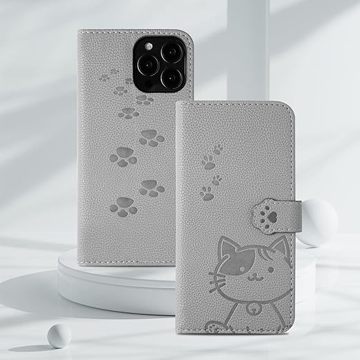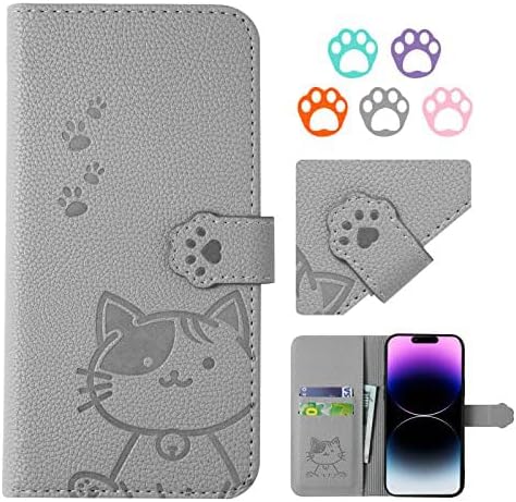【YIMASE 対応 Xiaomi Redmi 14C ケース 手帳型 】 レドミ14C ケース 手帳型 すべてのコントロールと機能に正確かつ簡単にアクセス redmi14c スマホケース 手帳型 可愛い redmi14cケース 携帯ケース Redmi 14C スマホケース スタイリッシュでかわいい猫柄の 財布型-グレー a