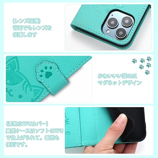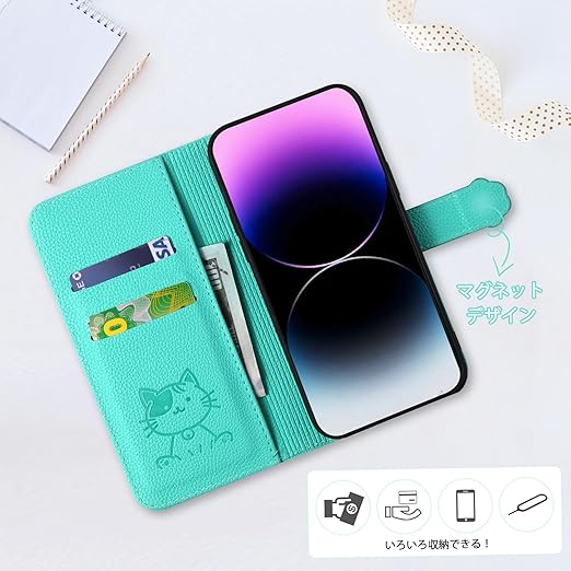【YIMASE 対応 Xiaomi Redmi 14C ケース 手帳型 】 レドミ14C ケース 手帳型 すべてのコントロールと機能に正確かつ簡単にアクセス redmi14c スマホケース 手帳型 可愛い redmi14cケース 携帯ケース Redmi 14C スマホケース スタイリッシュでかわいい猫柄の 財布型-グリーン a