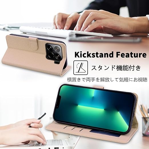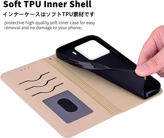 【特徴1:高品質PUレザー】軽量化のスマホケースです。外側カバーには滑り止めのライチ模様のPUレザーを採用します。内側のホルダーは柔軟なTPU素材を採用したソフトケースです。汚れにくくて指紋防止の特徴を持っております。耐衝撃の二重構造で落下の衝撃をうまく吸収します、本体をしっかりと守ります。