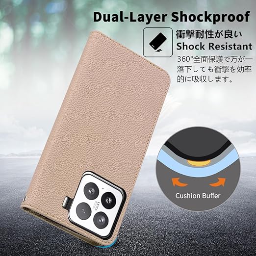 Xiaomi 15 ケース 手帳型 通用 シャオミ 15 手帳 Xiaomi15 SIMフリー シャオミ15 カバー シャオミ15ケース 携帯カバー 耐衝撃 ストラップ付き 適用 case Cobeimisr ライチ紋 軽量 カードケース ストラップ スマホケース ベージュ a