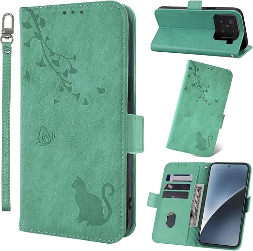 Xiaomi 15 ケース 手帳型 シャオミ15 ケース 手帳型 Xiaomi15 カバー 財布型 シャオミ15スマホケース 携帯カバー Jajaful シャオミー15手帳型ケース 耐衝撃 マグネット式 スタンド機能 カード収納 PUレザー 軽量 猫 グリーン a