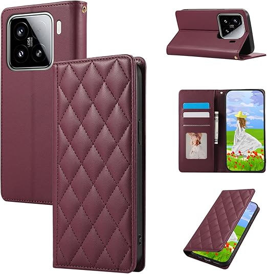 Gedurya Xiaomi 15 用 ケース 手帳型 シャオミ15 ケース シャオミ 15 携帯カバー RFIDブロッキング カード収納 財布型 Xiaomi15 スマホケース 6.36インチ対応 マグネット式 スタンド機能 全面保護 耐衝撃 ひし形 グリッド 刺繍 パターン - レッド a