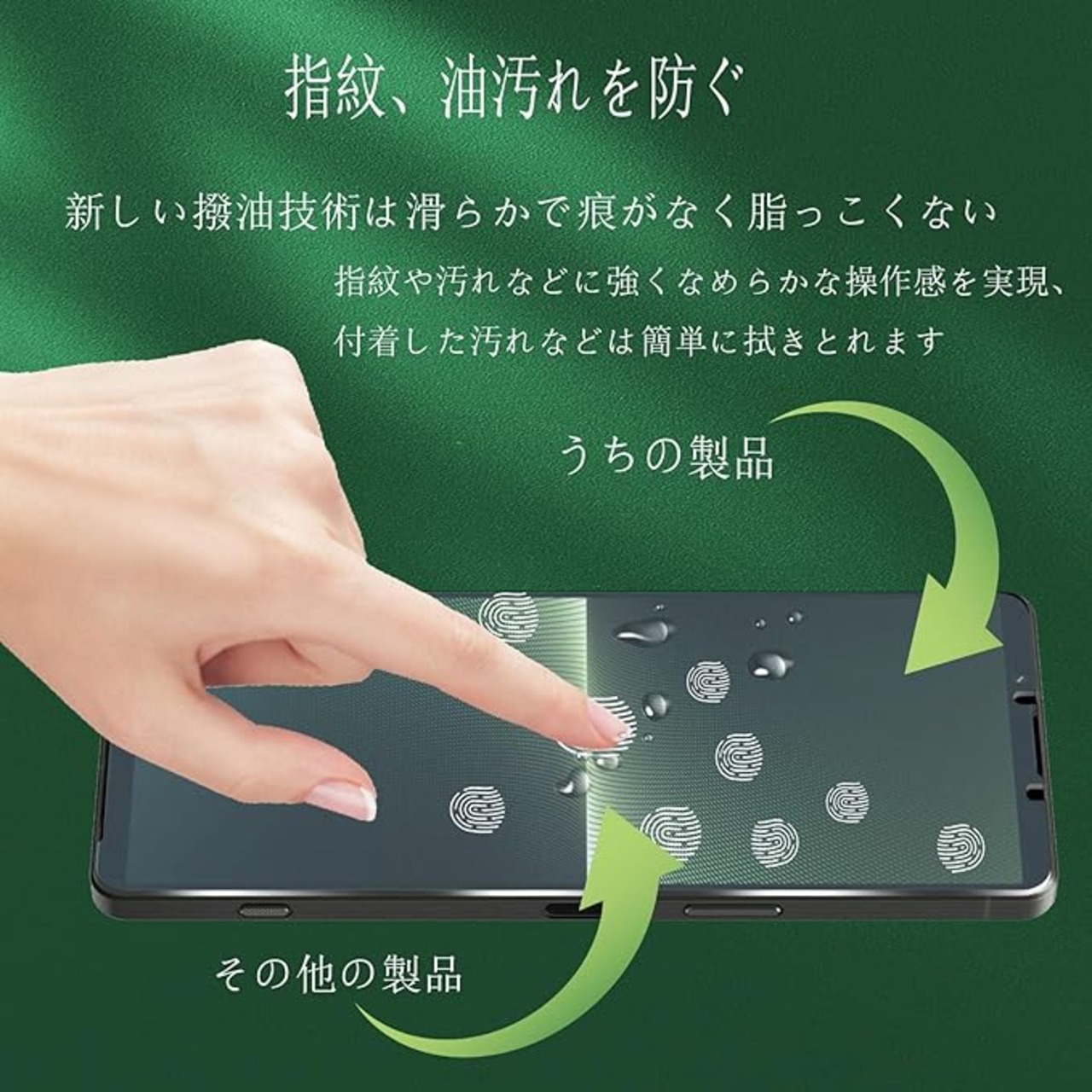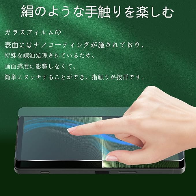 【防指紋、油、水】Xperia 1 V ガラスフィルムの表面にはナノコーティ
