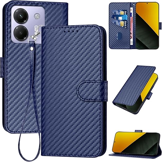 Gedurya Xiaomi POCO M7 Pro 5G ケース 手帳型 シャオミ POCO M7プロ 5G スマホケース 炭素繊維ブレイドスタイル 肌触り良い 携帯カバー マグネット開閉式 スタンド機能 軽量 薄型 ポコm7プロ 5g 手帳型 ケース 指紋防止 人気 上質 携帯ケース 全面保護 財布型 便利 - ブルー a