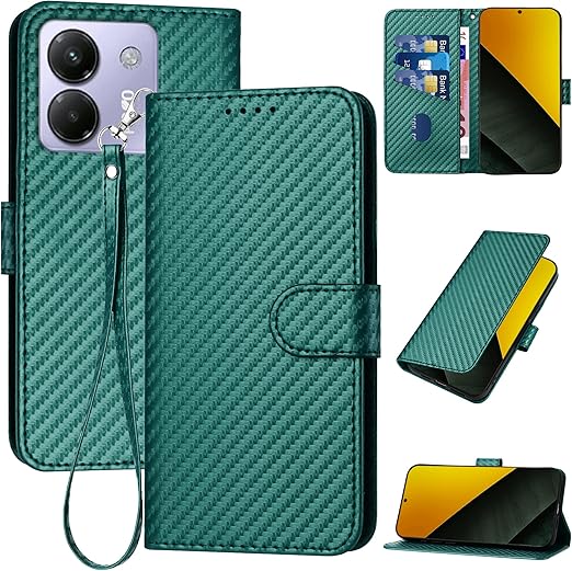Gedurya Xiaomi POCO M7 Pro 5G ケース 手帳型 シャオミ POCO M7プロ 5G スマホケース 炭素繊維ブレイドスタイル 肌触り良い 携帯カバー マグネット開閉式 スタンド機能 軽量 薄型 ポコm7プロ 5g 手帳型 ケース 指紋防止 人気 上質 携帯ケース 全面保護 財布型 便利 - グリーン a