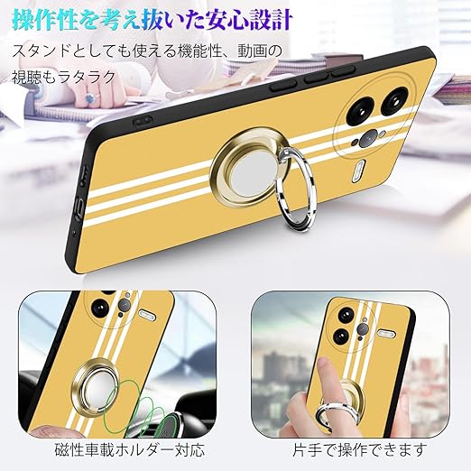 Xiaomi POCO F7 Ultra ケース リング 耐衝撃 TPU 指紋防止 シリコン 車載ホルダー対応 360°回転 ストラップホール付き 滑り止め 落下防止 全面保護カバー(イエロー) a