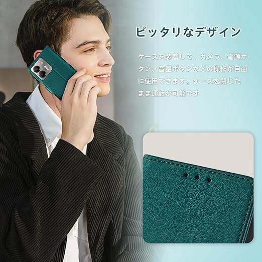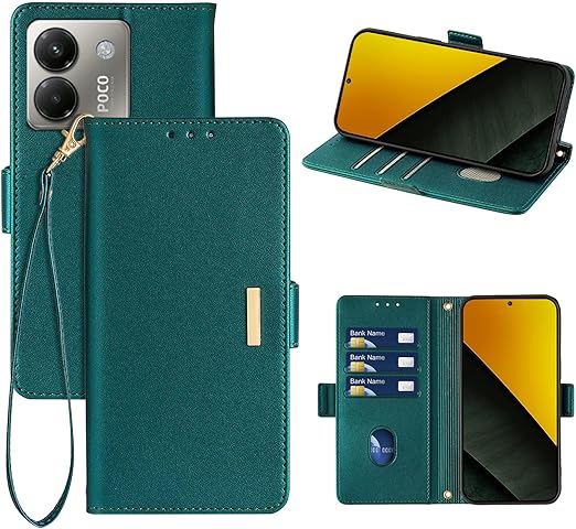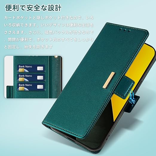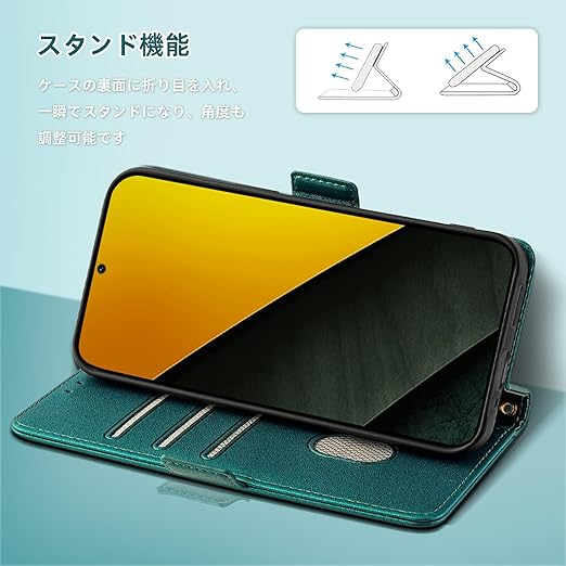RanBluu コンパチブル Xiaomi POCO M7 Pro 5G ケース 手帳型 シャオミ poco m7 pro 5g 用 レザーケース 携帯カバー スマホケース 財布型 カード収納 マグネット開閉 カメラ保護 横置きスタンド機能 ストラップ付き 耐摩擦 耐衝撃 全面保護(Xiaomi POCO M7 Pro 5G 対応 グリーン) a