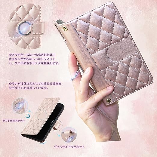 Vokpok Xiaomi 15 ケース 手帳型 高級PUレザー おしゃれシャオミ15 財布型 ケース 強力マルチカード収納 手首ベルト、斜め肩ベルト両用 Xiaomi 15 スマホケース スタンド機能付き 耐衝撃 耐摩擦 全面保護 おしゃれ小香風 人気上品な シンプル気質 ギフトシャオミ15 対応 6.36インチ, ローズゴールド a
