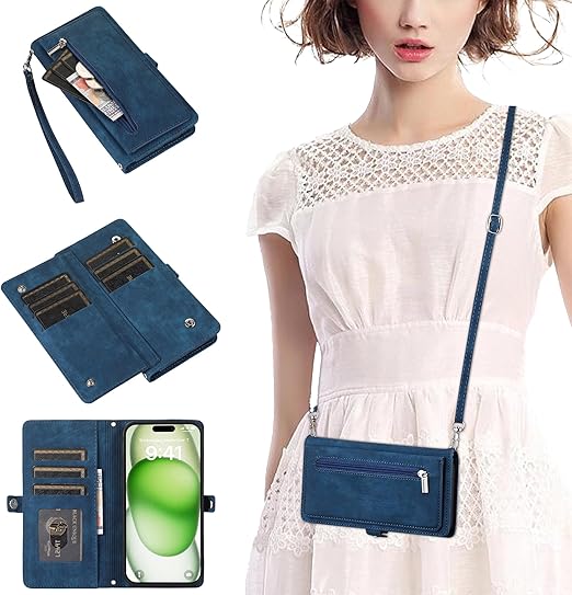 Gedurya Xiaomi POCO M7 Pro 5G 用 ケース 手帳型 ショルダー シャオミ ポコm7プロ 5g ケース 肩掛け POCO M7 Pro スマホケース 首掛け 斜め掛け 携帯カバー スタンド機能 ファスナー型 小銭入れ 9枚カード収納 財布付き 多機能な収納スペース 同色同素材のストラップ(長+短) - ブルー a