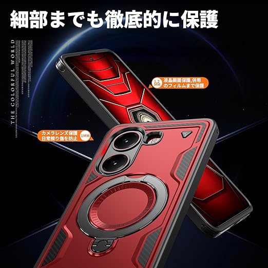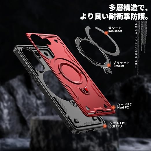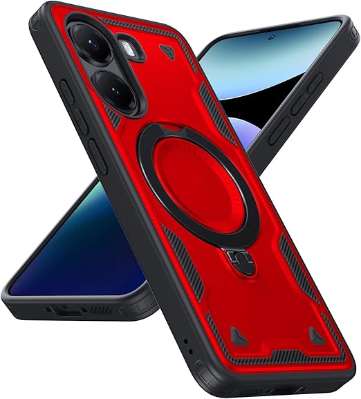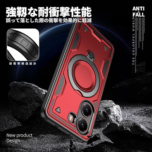 Xiaomi POCO X7 Pro 5G 用 ケース リング付き 耐衝撃 米軍MIL規格 アイフォン Poco X7 Pro 5G 用 ケース スタンド機能 車載ホルダー対応 滑り止め ワイアレス充電対応 赤 C98-xm x7p-02 a