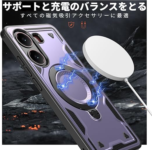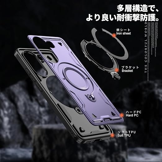 Xiaomi POCO X7 Pro 5G 用 ケース リング付き 耐衝撃 米軍MIL規格 アイフォン Poco X7 Pro 5G 用 ケース スタンド機能 車載ホルダー対応 滑り止め ワイアレス充電対応 紫 C98-xm x7p-04 a