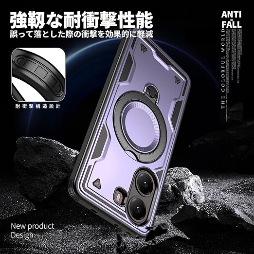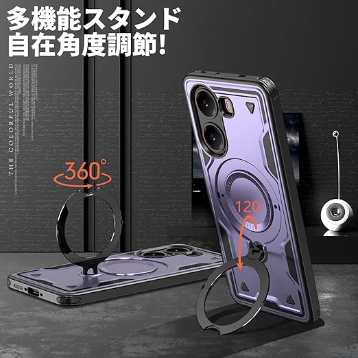 【リング付き・スタンド機能】後ろで嵌め込み式リング付き、伝統的なリングと比較して、設備ですの水平安定性を維持することができます。ケースを横向きにするとスタンド機能になり、360度回転と120度調節