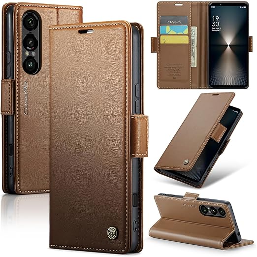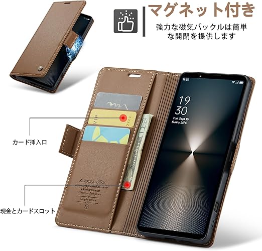 ReHowy Xperia 1 VII 対応 ケース 手帳型 PUレザー 携帯便利 エクスペリア 1 vii 保護カバー 衝撃防止 擦り傷防止 全面保護 磁気バックル付き スタンド機能付き カード収納 コイン収納 実用性高 携帯カバー レトロ xperia 1 vii 用 手帳型ケース ブラウン a