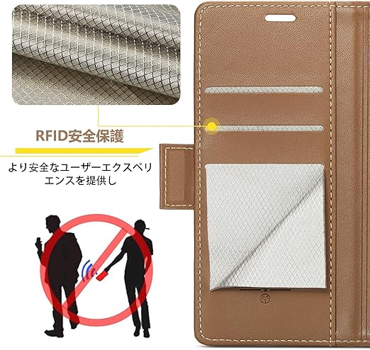 【上品なデザイン】外部のカバーは高品質なPUレザー素材で作られ、素材の表面に手触りは非常に良い、上品で洗練されたデザインです。中身は柔軟なTPU素材で作られて、スマートフォンの全面保護でき、脱着簡単です。【磁気バックル付き】カバーを閉じると勝手にマグネットが着くので手間がかかりません