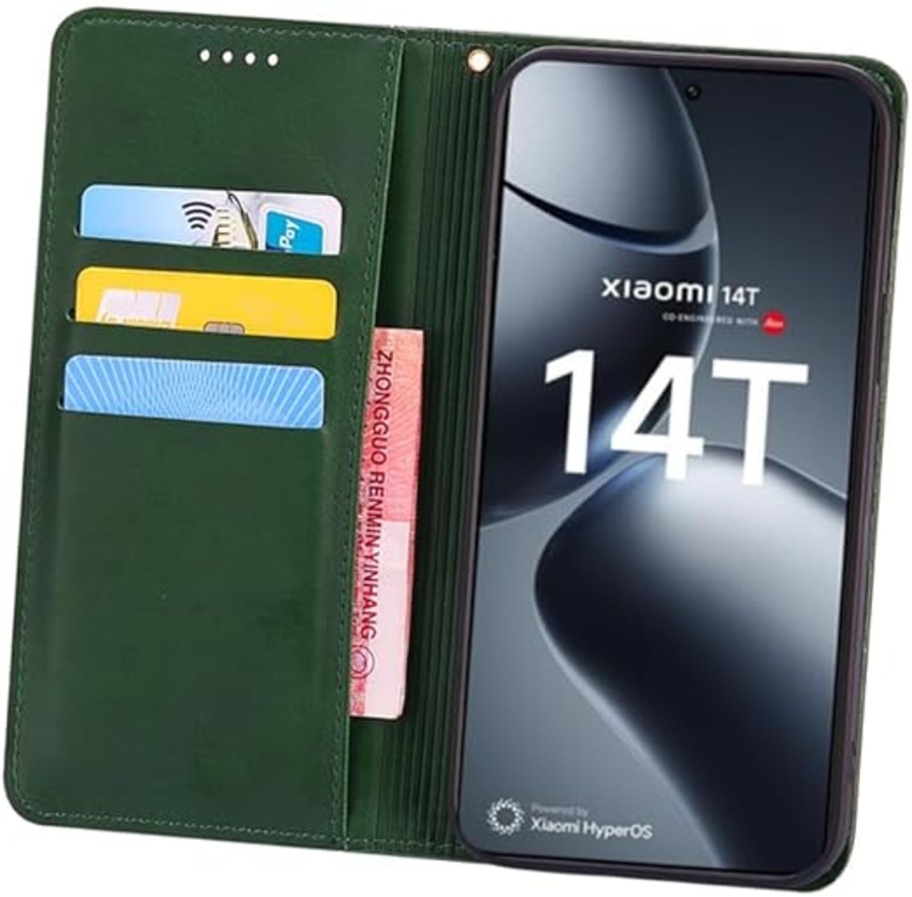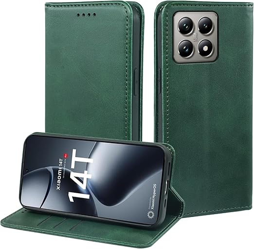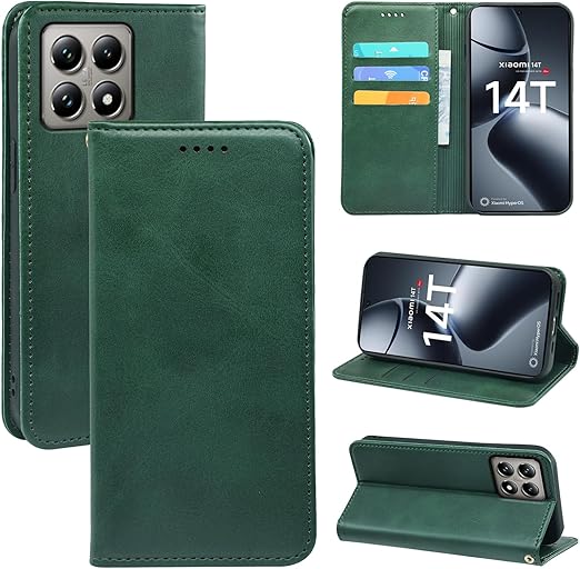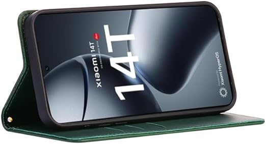 に適用するXiaomi 14T Pro ケース 手帳型 ノートブック型携帯電話保護カバー多機能携帯電話ホルスター (グリーン) a