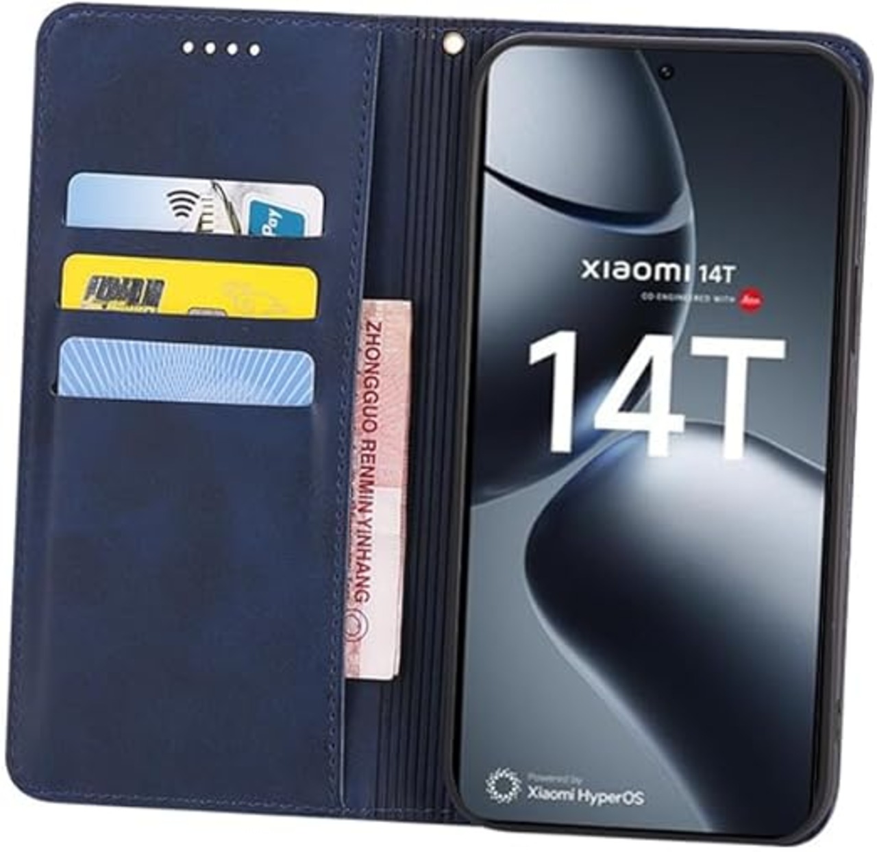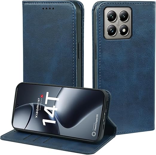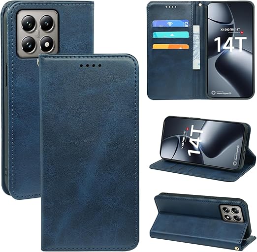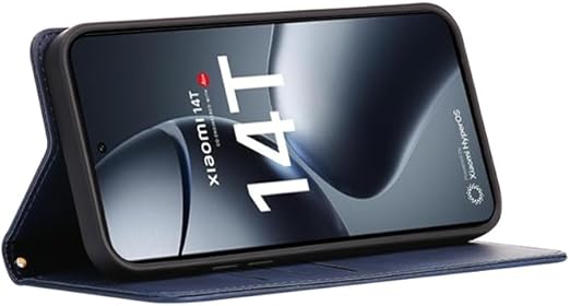 に適用するXiaomi 14T Pro ケース 手帳型 ノートブック型携帯電話保護カバー多機能携帯電話ホルスター (ダークブルー) a
