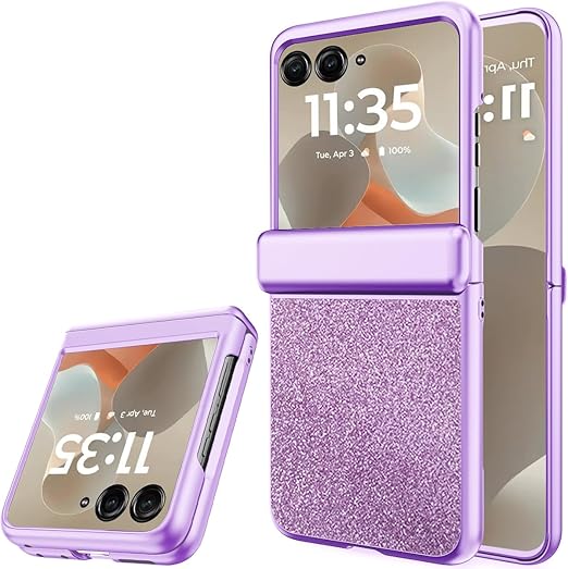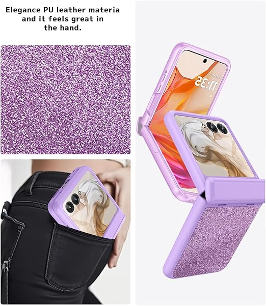 NINKI適応Moto Razr 60 2025用ケース キラキラ光る 人気 おしゃれ ヒンジ保護 かわいい 液晶保護フィルム付き 衝撃保護 ぴかぴか 折りたたみ サブ画面保護 手触り良き 耐衝撃 デザイン モトローラ 60 ケース (パープル) a