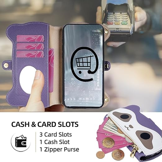 For Xperia 1 VII ケース 手帳型 ショルダー For エクスペリア1 vii マーク7 SO-51F/XQ-FS44/SOG15 カバー 財布型【 ストラップ 長+短 2本】化粧鏡付き ジッパー小銭入れ カード収納 横置き 耐汚れ PUレザー 防指紋 高耐久性 かわいい アライグマ柄 女性用 贈り物 パープル a