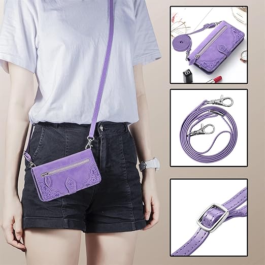 Pokaas Xperia 1 VII ケース Sony Xperia 1 VII SO-51F カバー エクスペリア 1 VII カバー スマホケース 財布型ケース 手帳型ケース 肩掛け 手掛け 斜めがけ ショルダーケース カード収納 2種類ストラップ付き 長さ調整可能 2way 縄掛け 財布合一 スタンド機能 マグネット式 全面保護 男女兼用 (パープル) a