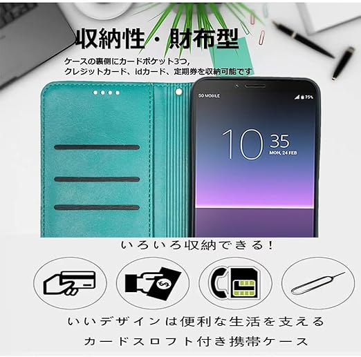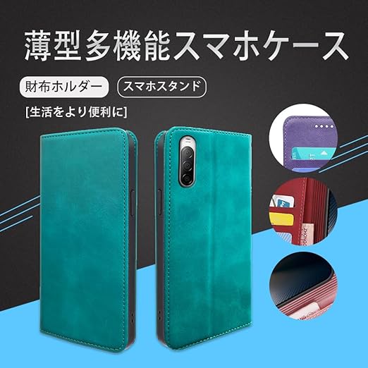 対応Xperia 10 III SO-52B SOG04 / Xperia 10 III Lite 手帳型 シェルノートブックタイプ保護カバーノートブックカード収納側マグネットブラケット機能互換性のある耐衝撃性軽量モダンシンプルファッションPUレザー折りたたみ式フル保護カバー男性と女性のスマートフォンケース用(ライトブルー) a