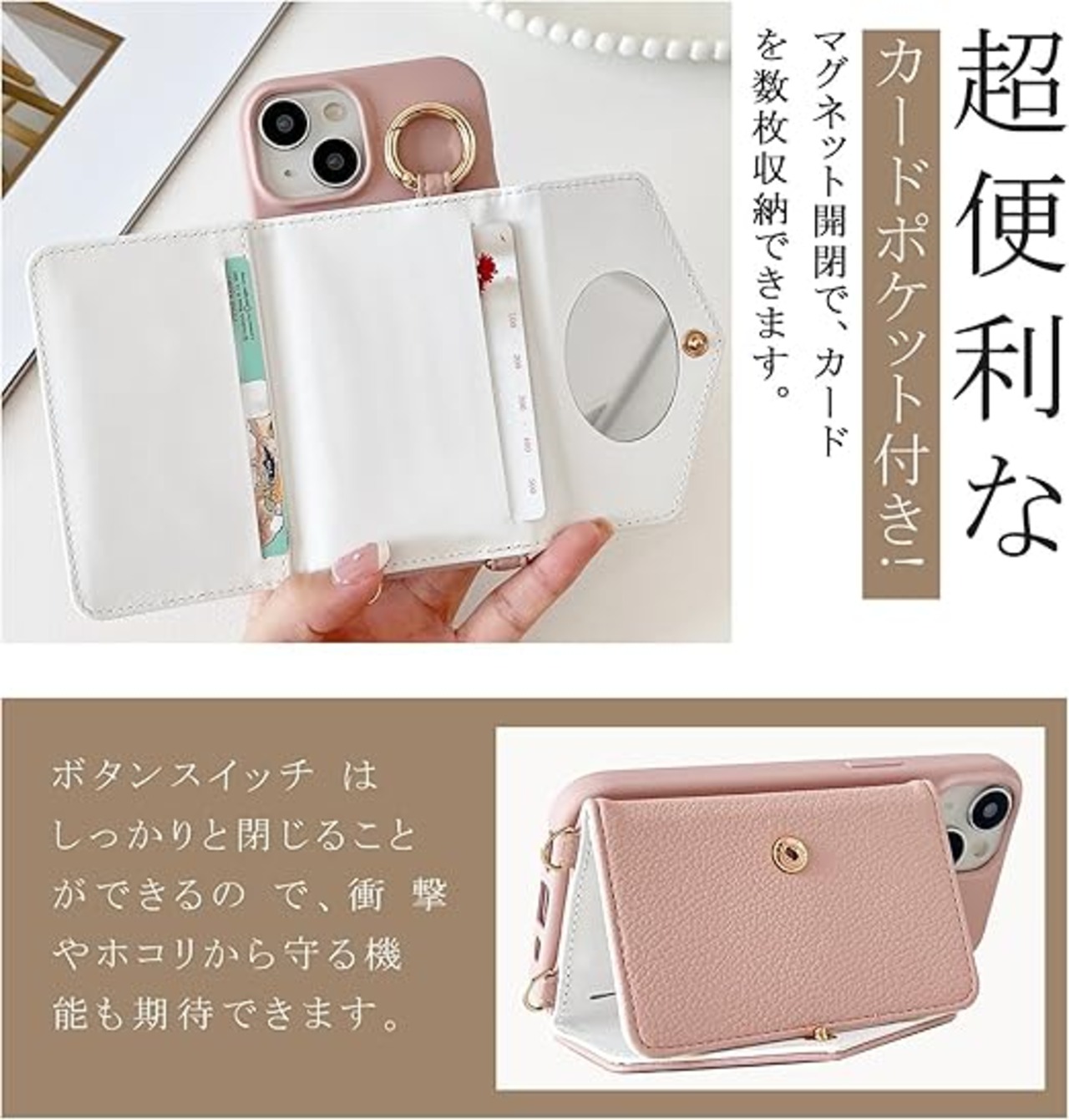 肩掛け&首かけストラップ: ロングモードならジャケットの上から肩掛けでハンズフリーに、ショートモードなら首からブラリとおしゃれに着用可能! 自由に長さ調整できるストラップで、アウトドアや旅行はもちろん、日常の買い物や通勤中も両手がフリーに。アクティブな動きや急な動作でもスマホを安定保持、落とす心配なく快適に使えます