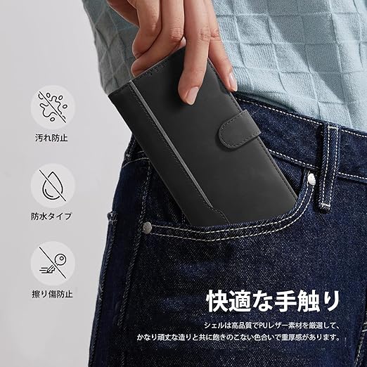 【上質な合成皮革】: 外:厳選された高品質PU革で丁寧な縫製プロセスを施し、手触りが優しくても、色合いに相性良いフック式のストラップが同梱販売。内:柔軟性が良いTPU材質、放熱性が良、軽量で耐衝撃性に優れ、変形しにくくまた、取り外しが簡単で、スマホ本体への