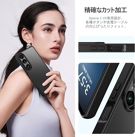 BENTOBEN Xperia 1 VII ケース マット 半透明 耐衝撃 米軍MIL規格 四隅強化 軽量 薄型 傷つけ防止 指紋防止 黄変なし ストラップホール付き エクスペリア 1 VII スマホケース カバー ブラック a