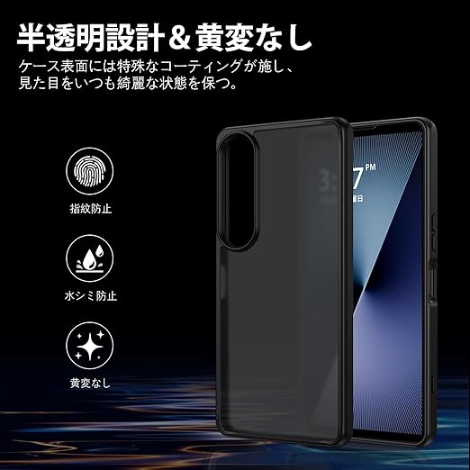 ★【半透明・マットな質感】半透明デザインでxperia1vii のオリジナルのカラーに高級感と神秘感をプラスします。シルクのようなサラサラな質感で触り心地がすごくよい。背面のポリカーボネートは耐久性や耐摩耗性に優れ、長く使っても綺麗に見え。表面には指紋防止コーティングを施しており、指紋つく心配はありません。
