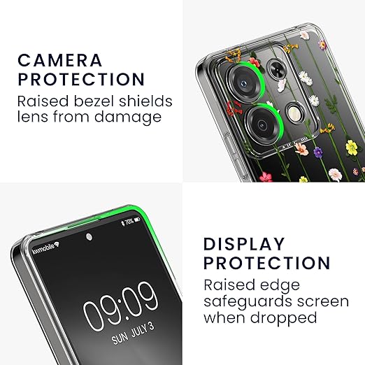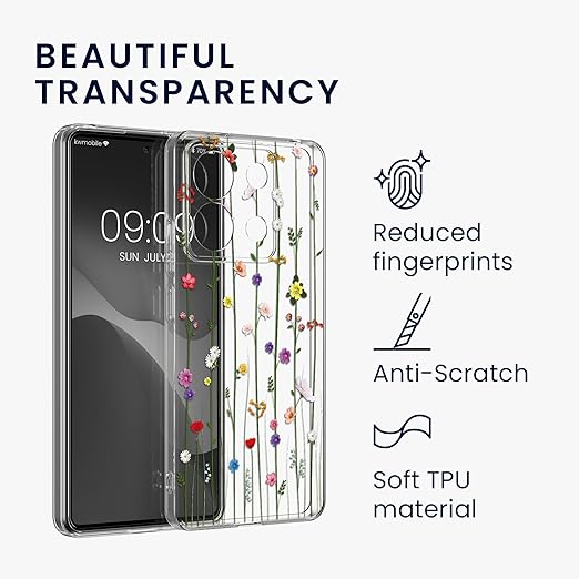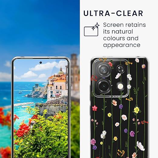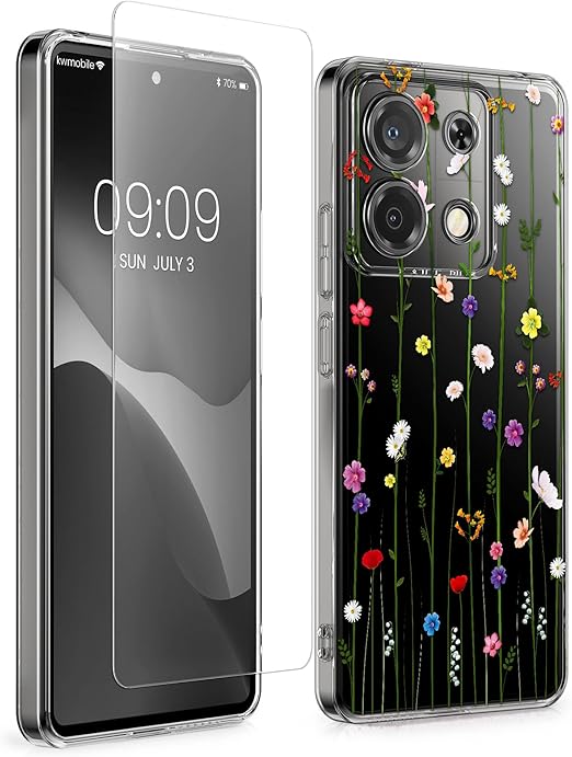 kwmobile スマホケース Xiaomi Redmi Note 13 Pro 5G / Poco X6 5G対応 ケース - ガラスフィルム 耐衝撃 TPU クリア ソフト フラワー 巻きひげデザイン a