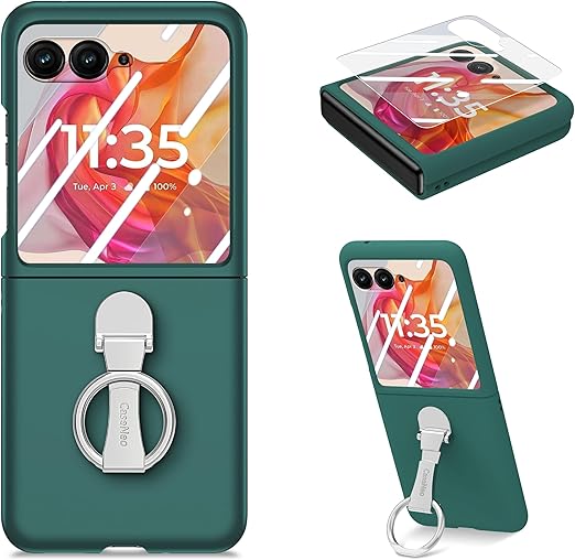 Sanlinba Motorola Razr 50 ULtra 用 ケース リングスタンド付き 軽量 薄型 耐衝撃 ケース 強化ガラスフィルム付き 防指紋 落下防止 カバー a
