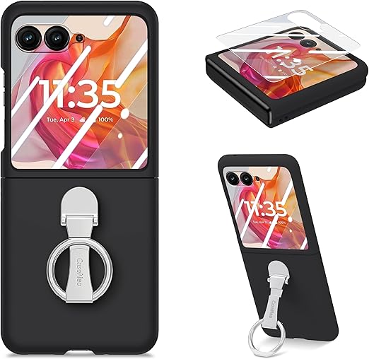Sanlinba Motorola Razr 50 ULtra 用 ケース リングスタンド付き 軽量 薄型 耐衝撃 ケース 強化ガラスフィルム付き 防指紋 落下防止 カバー f