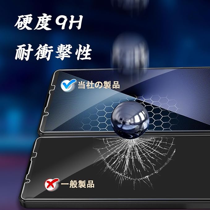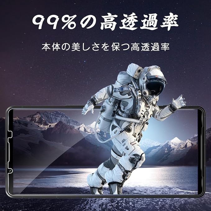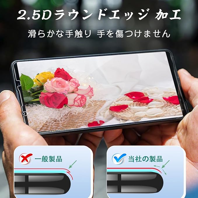 【日本製旭硝子製素材】表面硬度9Hと非常に高い硬度の持つ素材を採用し、外部の衝撃を吸収し、画面への損傷を最小限に抑えることができます。縁にかかる衝撃が軽滅しガラスフィルムの耐久性にも向上させます。特殊な飛散防止設計に