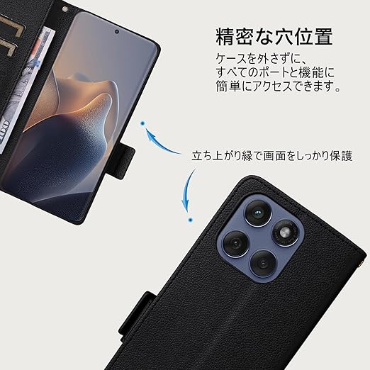 ケース手帳型は、耐衝撃・落下防止・衝撃吸収機能を備えた上で、擦り傷防止と耐摩耗性にも優れており、Motorola Edge/Edge60s/Edge 60 fusion のスマートフォンを日常の衝撃や損傷から全方位で保護します。