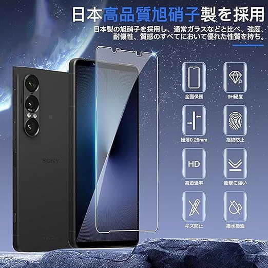 【2枚入り】 For Xperia 1 VII ガラスフィルム SONY Xperia 1 VII SO-51F 6.5インチ 液晶保護強化ガラスフィルム 【Kibnco】硬度9H 耐衝撃 日本旭硝子素材 飛散防止 指紋防止 高透過率 気泡ゼロ 自動吸着 0.26mm 2.5D 対応 a