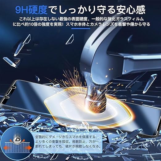 【強化素材製】ガラスフィルムは日本板哨子社製ガラス素材を採用し、強度が9Hであり、生活用品のほとんどが傷を付けることができません。万が一破損する場合にもほとんど飛び散らなく、とても安全です。