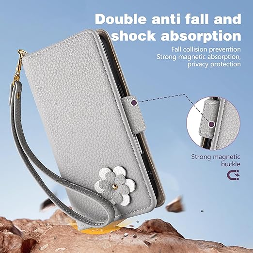 Vokpok対応 Sony Xperia 10 IV SO-52C/SOG07 ケース 手帳型 PUレザー 可愛い3Dフラワークラフト 手触りも色合いも あふれる 女性の エクスペリア 10 IV 財布型ケース カード収納機能 スタンド機能 全面保護 SO-52C スマホケース 簡約美しい ストラップ付き 家族、友達の素晴らしい贈り物 SOG07 ケース, ライトグレー a