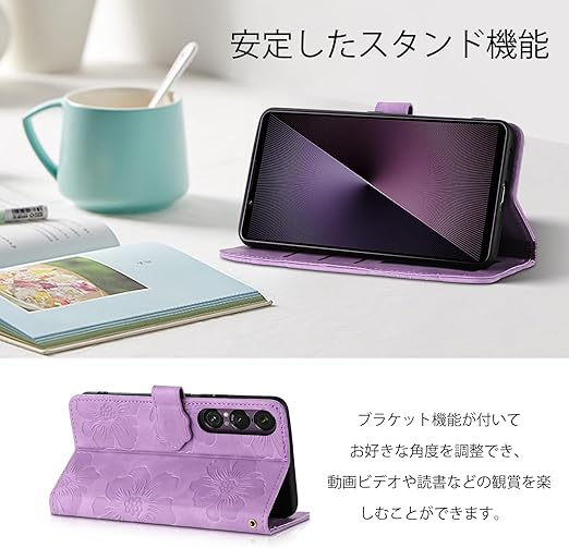 CASAFUNY Xperia 1 VII ケース 手帳型 人気 エクスペリア1 vii ケース 手帳型おしゃれ かわいい 美しい桜の柄 Xperia 1 マーク 7 携帯カバー 耐衝撃 本革レザー SO-51F SOG15 お洒落 カバー 財布型 スマホカバー カード収納 マグネット式 スタンド機能 軽量 6.5インチ(パープル) a