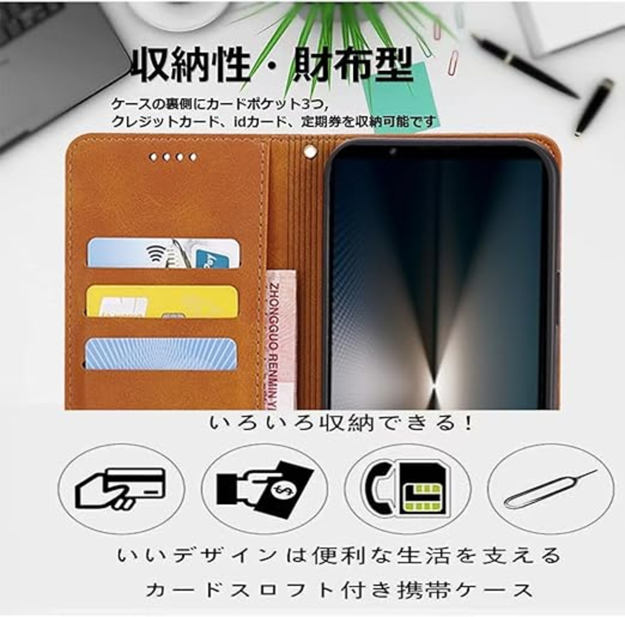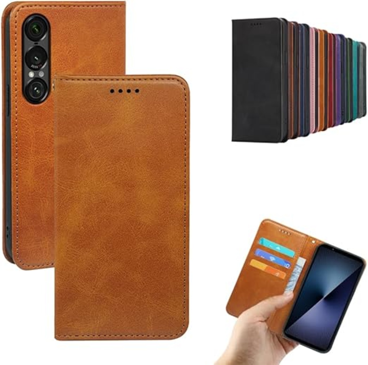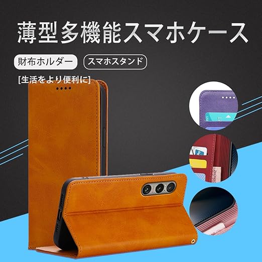 対応Xperia 1 VII SO-51F 手帳型 シェルノートブックタイプ保護カバーノートブックカード収納側マグネットブラケット機能互換性のある耐衝撃性軽量モダンシンプルファッションPUレザー折りたたみ式フル保護カバー男性と女性のスマートフォンケース用(カーキ色) a