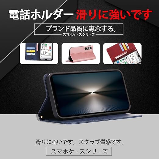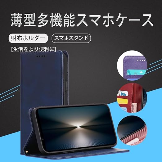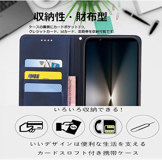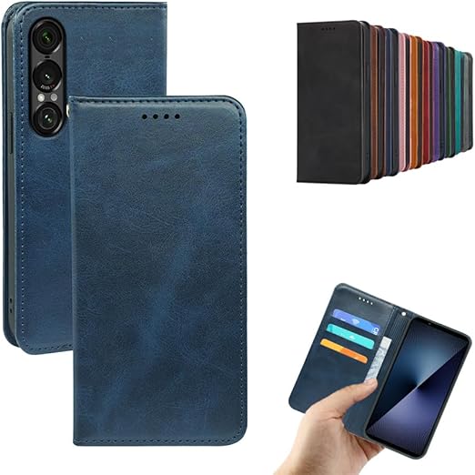 対応Xperia 1 VII SO-51F 手帳型 シェルノートブックタイプ保護カバーノートブックカード収納側マグネットブラケット機能互換性のある耐衝撃性軽量モダンシンプルファッションPUレザー折りたたみ式フル保護カバー男性と女性のスマートフォンケース用(ダークブルー) a