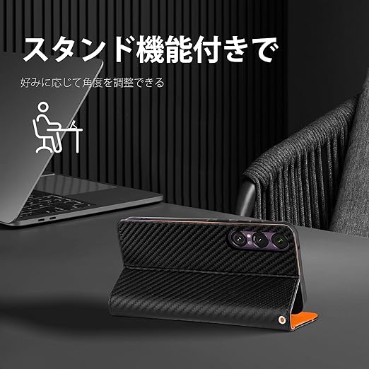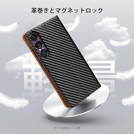 ★【耐衝撃保護】xperia 1vii ケース 手帳型は厳選された高品質PUレザー+炭素繊維を使って,通常の合成皮革に比べて放熱性と耐摩擦性が向上しています。ケース表面は撥水コーティング処理がされており