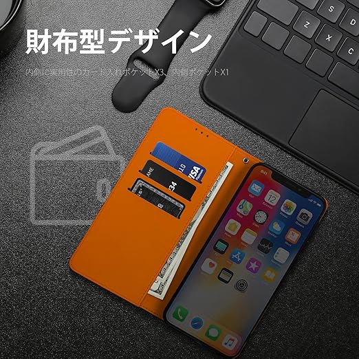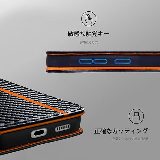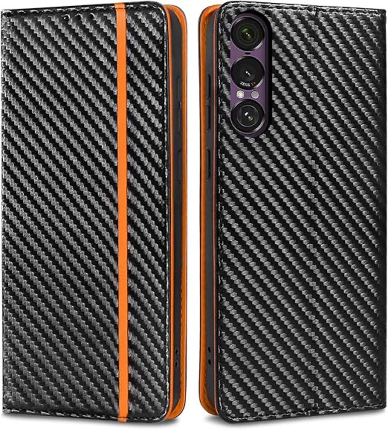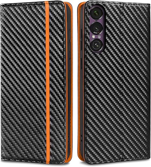 【iffeenny】xperia 1 vii ケース 手帳型 SO-51F ケース 炭素繊維調 シンプル 防水 耐摩擦 エクスペリア1 第7世代 携帯カバー 軽量 薄型 耐衝撃保護 カード収納 スタンド機能 マグネット内蔵 操作が簡単 便利 6.5インチ オレンジ a