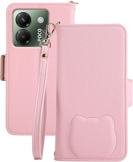 Rosbtib Xiaomi POCO M7 Pro 5G ケース 手帳型 かわいい 猫柄 人気 シャオミ ポコm7プロ 5g ケース 手帳型 オシャレ 軽量 耐久性 SIMフリー対応 ポコm7Proケース カード収納 肌触り良い スタンド機能 全面保護 贈り物 女性 可愛い ねこ POCOM7Pro スマホケース(ピンク) a