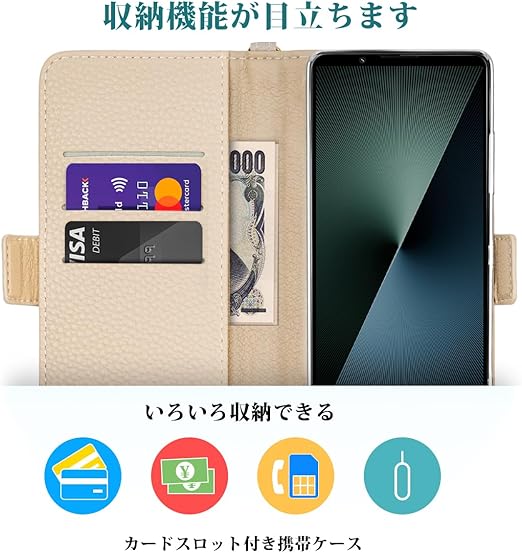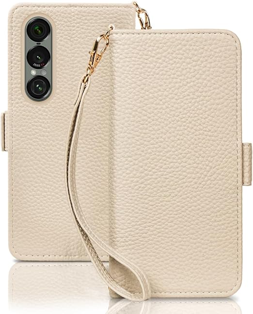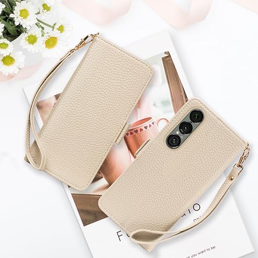 SZJAMIE Xperia 1 VII ケース 手帳型 SO-51F/SOG15 対応 手帳型ケース 財布型 上質な手触り おしゃれ SO51F カバー かわいい ソニー エクスペリア 1 第7世代 スマホケース 軽量 薄型 可愛い 人気 耐衝撃 カード収納 純正 お洒落 シンプル 横置きスタンド機能 ストラップ付き(Xperia 1 VII SO-51F/SOG15対応,ベージュ) a