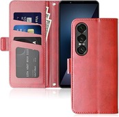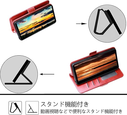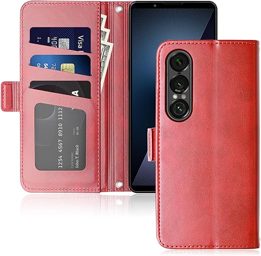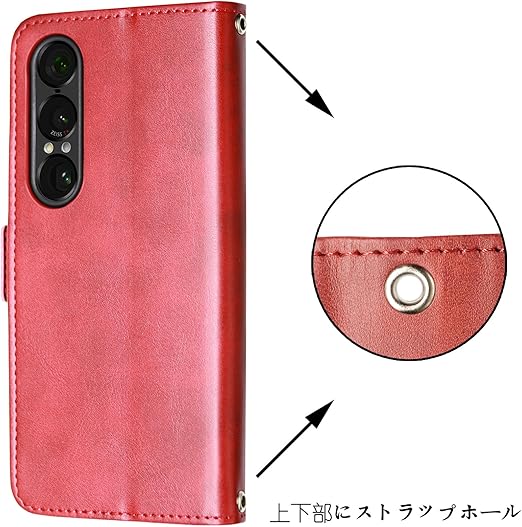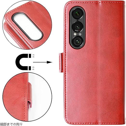 [SnkJYi] 対応 Xperia 1 VII ケース 手帳型 XQ-FS44 SO-51F SOG15 対応 カード 収納 高級PU 耐衝撃 財布 カバー (レッド, Xperia 1 VII) a