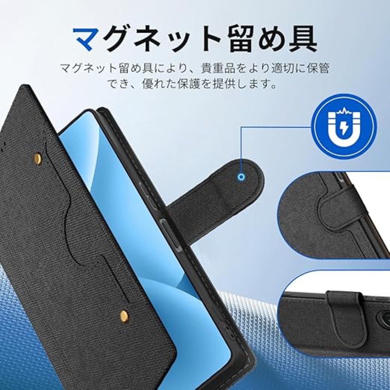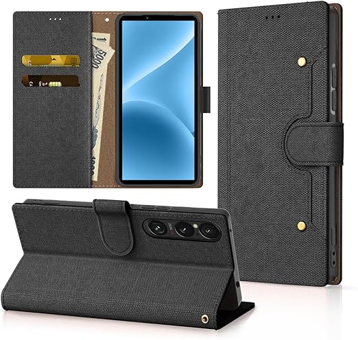 Sony Xperia 1 VI 手帳型 ケース 財布型 耐衝撃 カードポケット付き エクスペリア1vi スマホケース ヴィンテージデニム風レザー カード収納 スタンド機能付き SO-51E SOG13 携帯カバー 全面保護 ラップホール付き 高級レザー マグネット式 耐摩擦 おしゃれ ブラック a