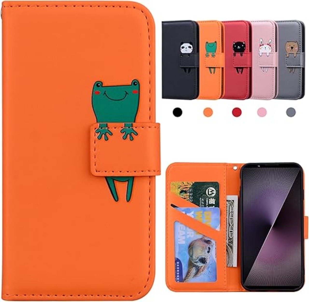 Kedic 対応 Xperia 1 VII ケース 手帳型 エクスペリア1viiケース SO-51F SOG15 カバー 可愛い エクスペリア1 vii ケース xperia1vii 手帳型ケース Xperia1 VII カバー カード収納 財布付き カードホル スタンド機能 かわいい 動物柄 薄型 防水 ノート型 男女兼用 オレンジ a