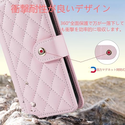 対応Sony Xperia 1 VII ケース 手帳型 【Vokpok】おしゃれ高級PUレザーとメタル金具マグネット開閉式 エクスペリア 1 VII 財布型ケース カード収納機能 スタンド機能 耐衝撃Xperia 1 vii SO-51F/XQ-FS44/SOG15 スマホケース キルティグレザー調おしゃれ小香風人気上品な シンプル気質 エクスペリア 1 vii 対応 6.5", ピンク a
