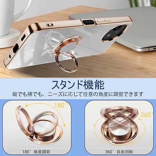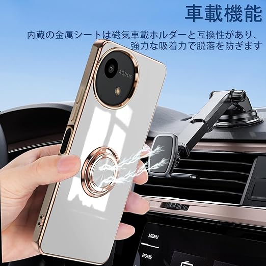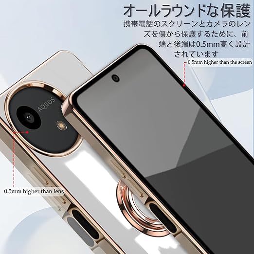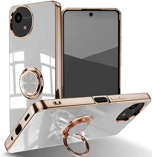[ZoRoll] AQUOS wish5 SH-52F 対応 スマホケース リング付き、カバー スマホケース wish5 TPU シリコン メッキ加工ケース、磁気吸着 軽量 薄型 人気 耐衝撃 タンド機能付き 360回転 車載ホルダー対応 アクオスwish5 SH-52F 用カバー (ホワイト) a