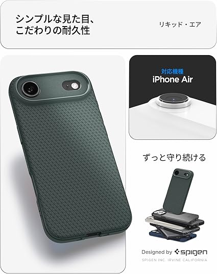 Spigen 【創業18年の技術力】 iPhone Air ケース 米軍MIL規格 ストラップホール マット TPU 耐衝撃 リキッド・エア (アビス・グリーン) ACS09924 a